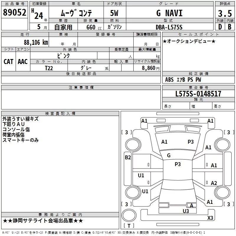 Daihatsu MOVE CONTE с аукциона Японии TAA Chubu лот № 89052