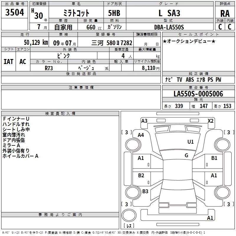 Daihatsu MIRA TOCOT с аукциона Японии TAA Chubu лот № 3504
