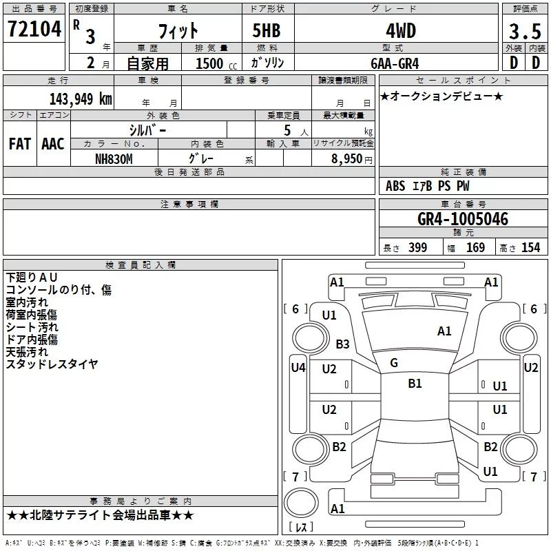 Honda FIT с аукциона Японии TAA Chubu лот № 72104