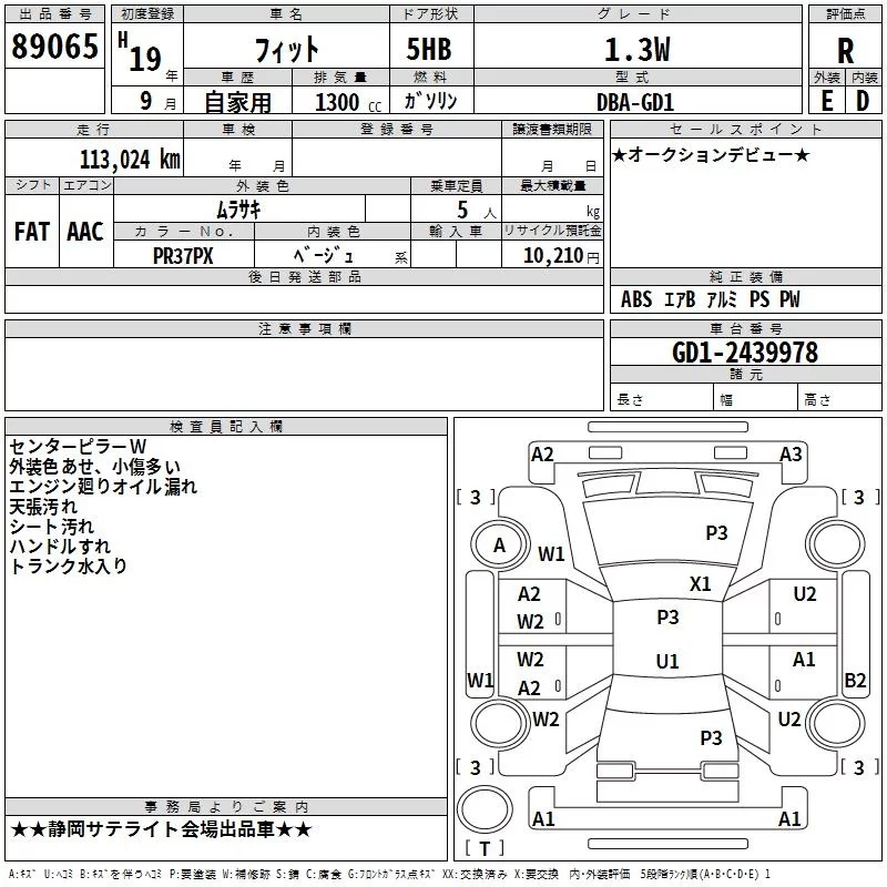 Honda FIT с аукциона Японии TAA Chubu лот № 89065