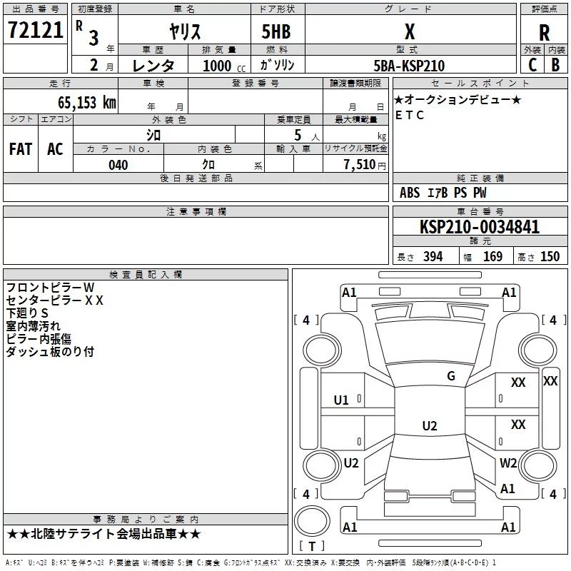 Toyota YARIS с аукциона Японии TAA Chubu лот № 72121