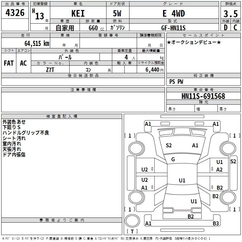 Suzuki KEI с аукциона Японии TAA Chubu лот № 4326