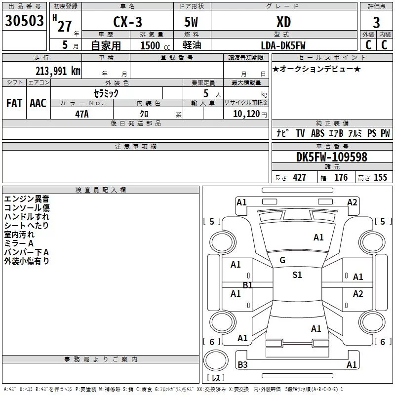 Mazda CX-3 с аукциона Японии TAA Chubu лот № 30503