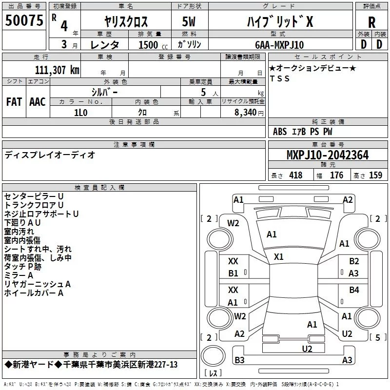 Toyota YARIS CROSS с аукциона Японии TAA Kanto лот № 50075