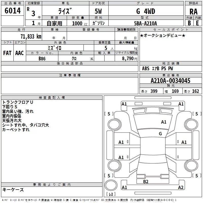 Toyota RAIZE с аукциона Японии TAA Tohoku лот № 6014