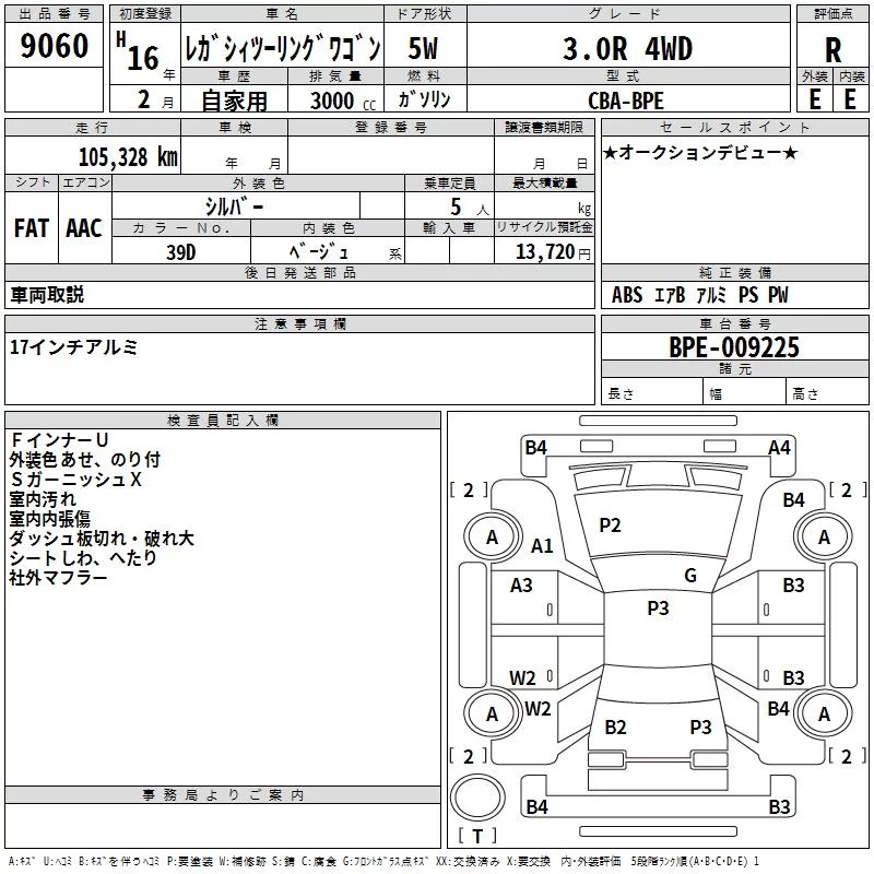 Subaru LEGACY с аукциона Японии TAA Kanto лот № 9060
