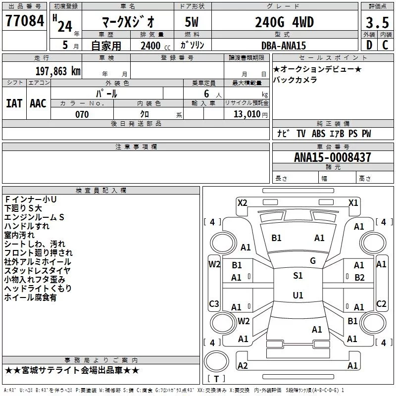 Toyota MARK X ZIO с аукциона Японии TAA Tohoku лот № 77084