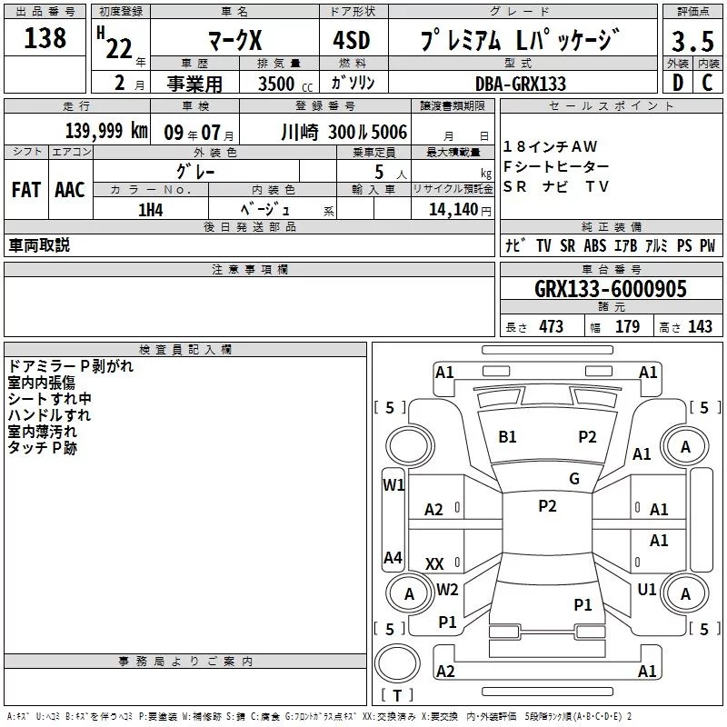 Toyota MARK X с аукциона Японии TAA Kanto лот № 138