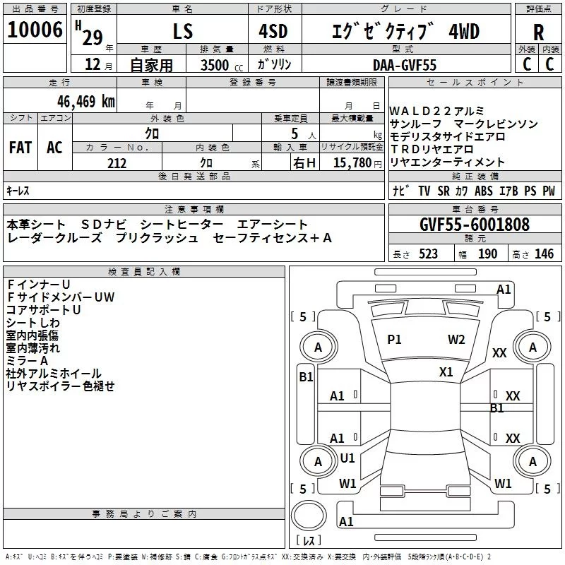 Lexus LS с аукциона Японии TAA Kanto лот № 10006