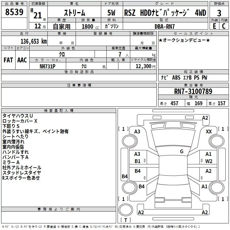 Honda STREAM с аукциона Японии TAA Chubu лот № 8539
