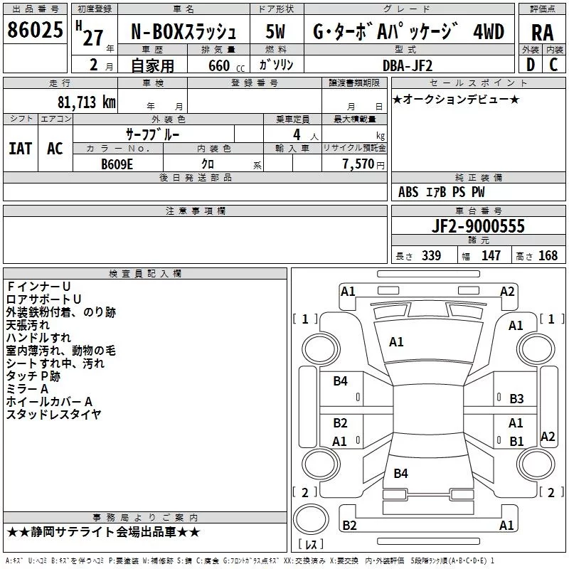 Honda N BOX SLASH с аукциона Японии TAA Chubu лот № 86025
