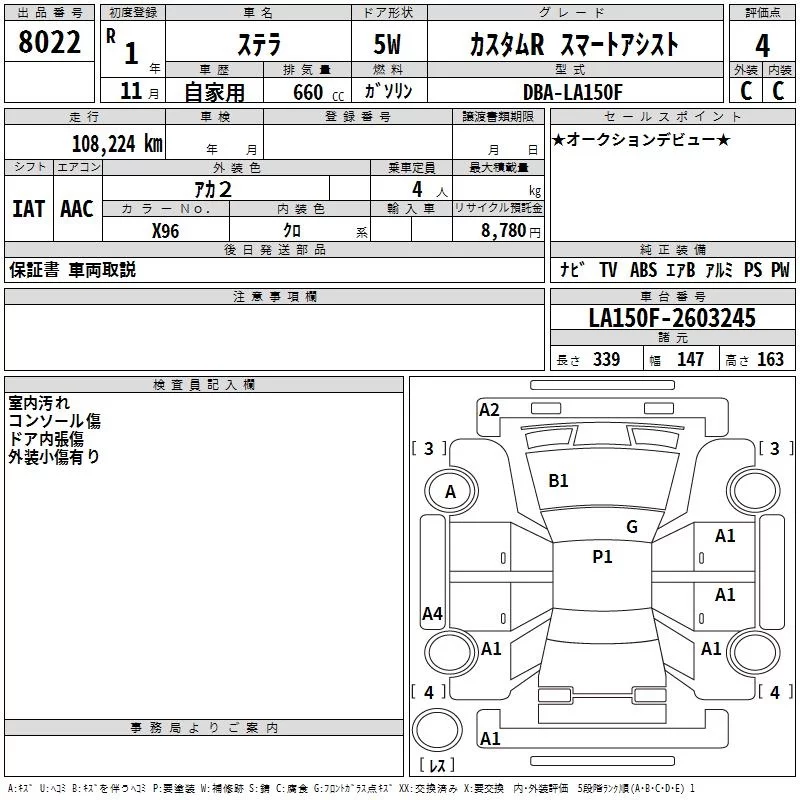 Subaru STELLA с аукциона Японии TAA Chubu лот № 8022