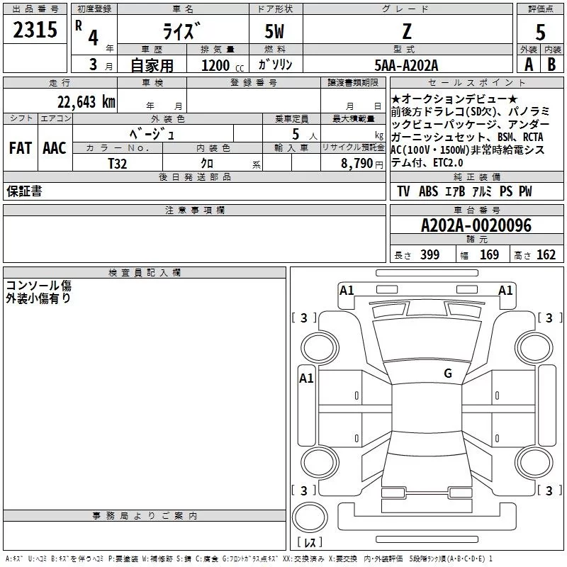 Toyota RAIZE с аукциона Японии TAA Chubu лот № 2315