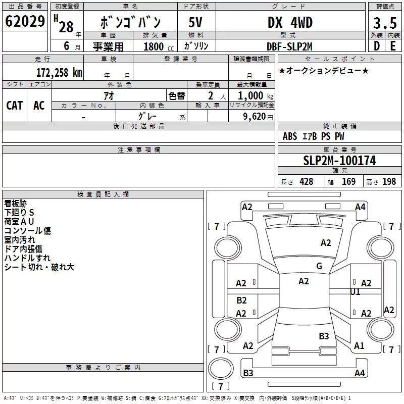 Mazda BONGO VAN с аукциона Японии TAA Tohoku лот № 62029