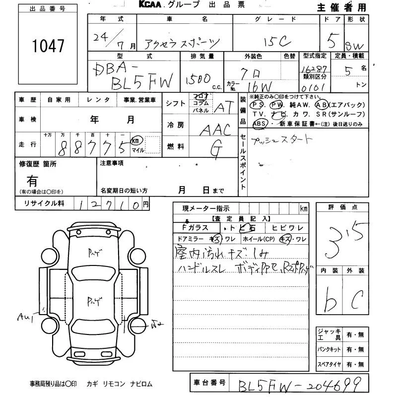 Mazda AXELA с аукциона Японии KCAA Fukuoka лот № 1047