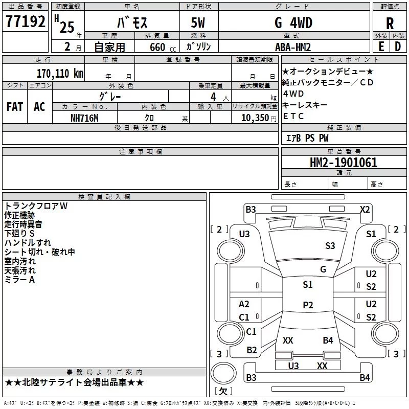 Honda VAMOS с аукциона Японии TAA Chubu лот № 77192