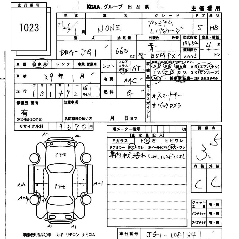 Honda N ONE с аукциона Японии KCAA Fukuoka лот № 1023
