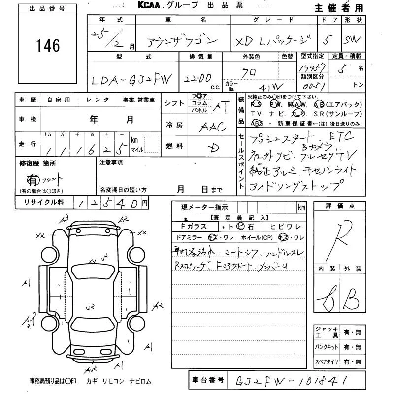 Mazda ATENZA WAGON с аукциона Японии KCAA Fukuoka лот № 146