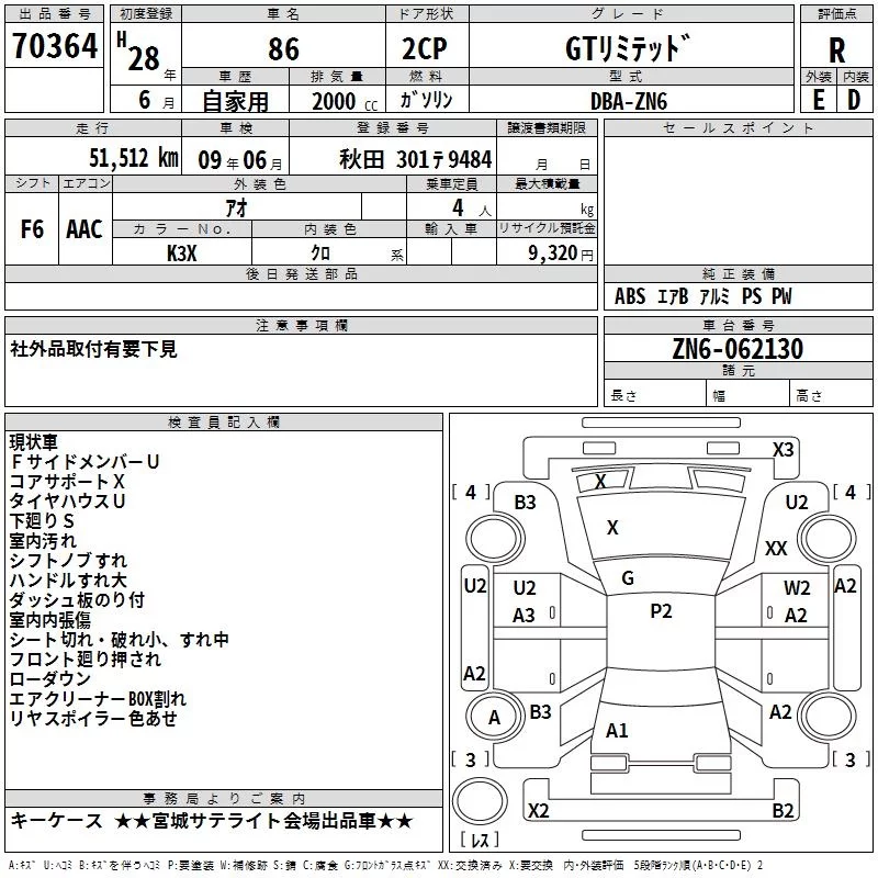 Toyota GT 86 с аукциона Японии TAA Tohoku лот № 70364