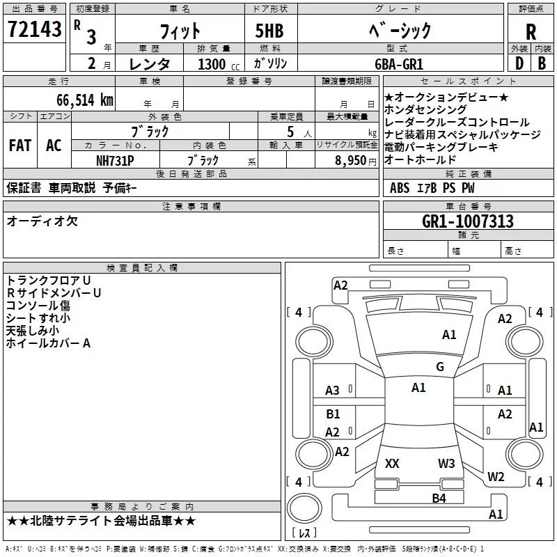 Honda FIT с аукциона Японии TAA Chubu лот № 72143