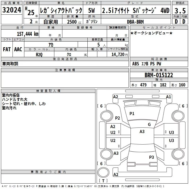 Subaru LEGACY OUTBACK с аукциона Японии TAA Kanto лот № 32024