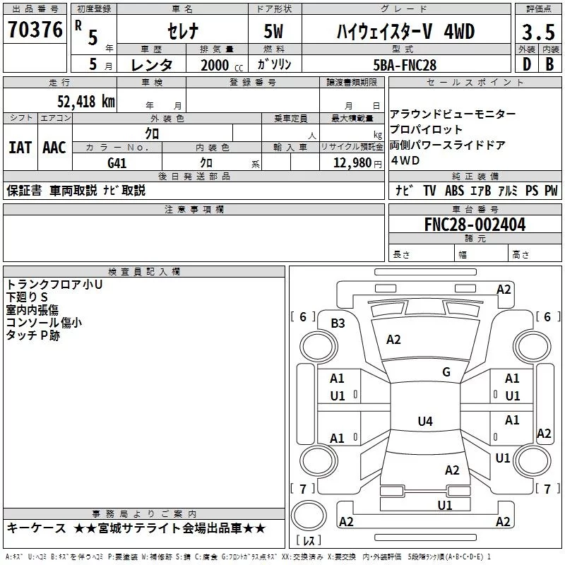 Nissan SERENA с аукциона Японии TAA Tohoku лот № 70376