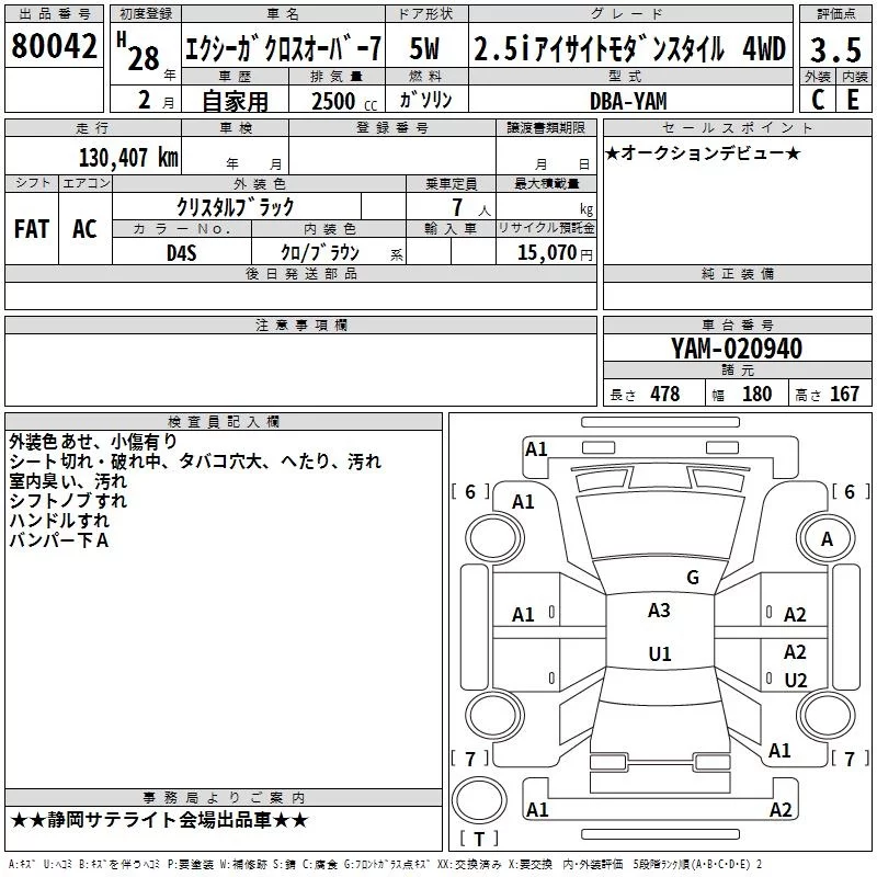 Subaru EXIGA с аукциона Японии TAA Chubu лот № 80042