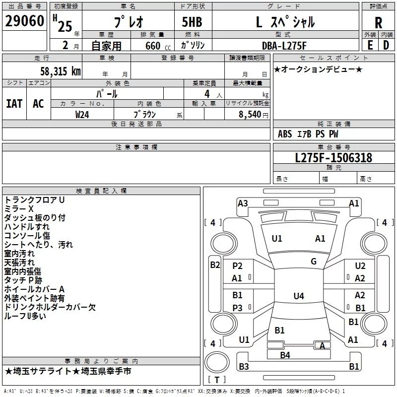Subaru PLEO с аукциона Японии TAA Kanto лот № 29060