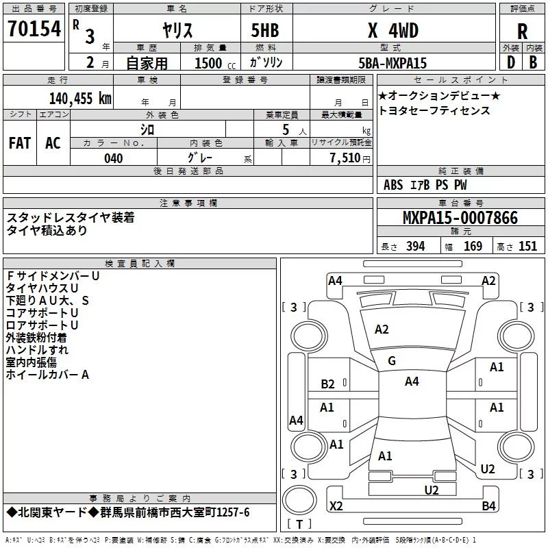 Toyota YARIS с аукциона Японии TAA Kanto лот № 70154