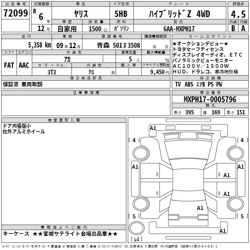 Toyota YARIS с аукциона Японии TAA Tohoku лот № 72099