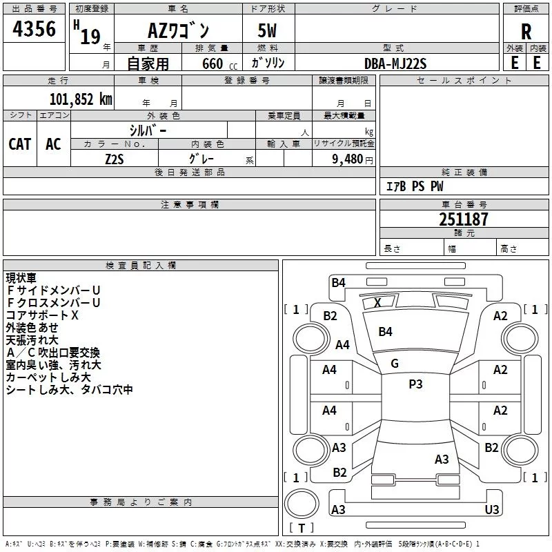 Mazda AZ WAGON с аукциона Японии TAA Chubu лот № 4356