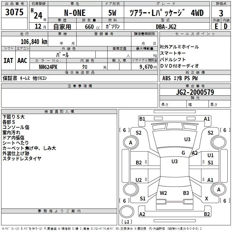 Honda N ONE с аукциона Японии TAA Tohoku лот № 3075