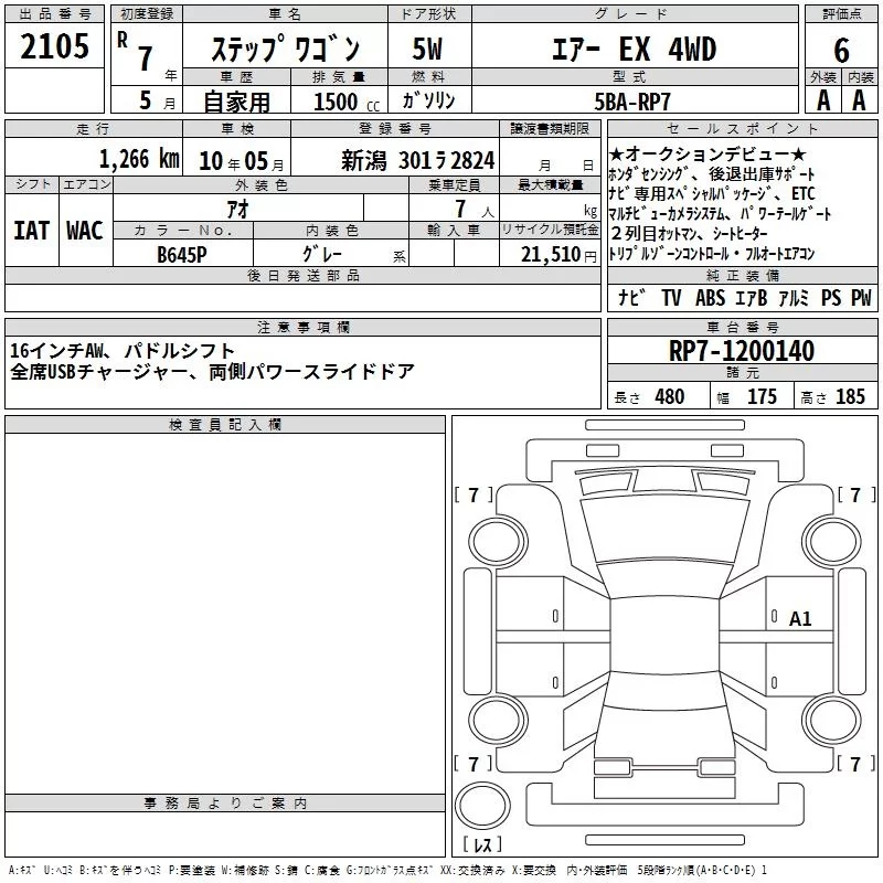 Honda STEP WAGON с аукциона Японии TAA Kanto лот № 2105