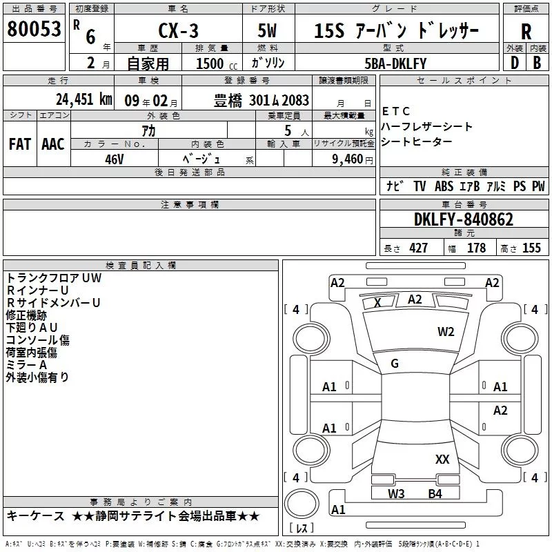 Mazda CX-3 с аукциона Японии TAA Chubu лот № 80053