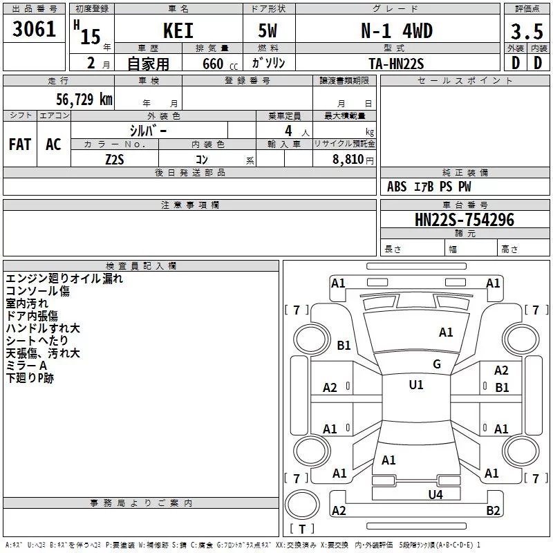 Suzuki KEI с аукциона Японии TAA Tohoku лот № 3061