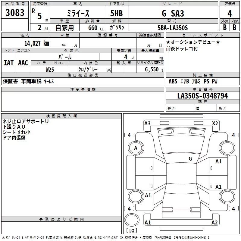 Daihatsu MIRA E S с аукциона Японии TAA Kanto лот № 3083