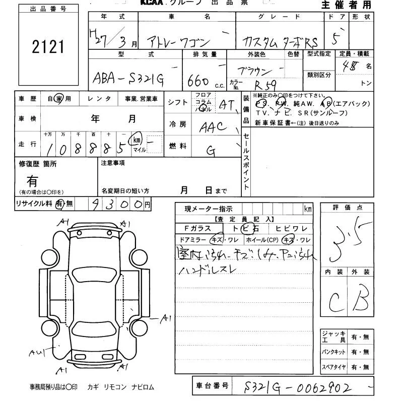 Daihatsu Atrai Wagon с аукциона Японии KCAA Fukuoka лот № 2121