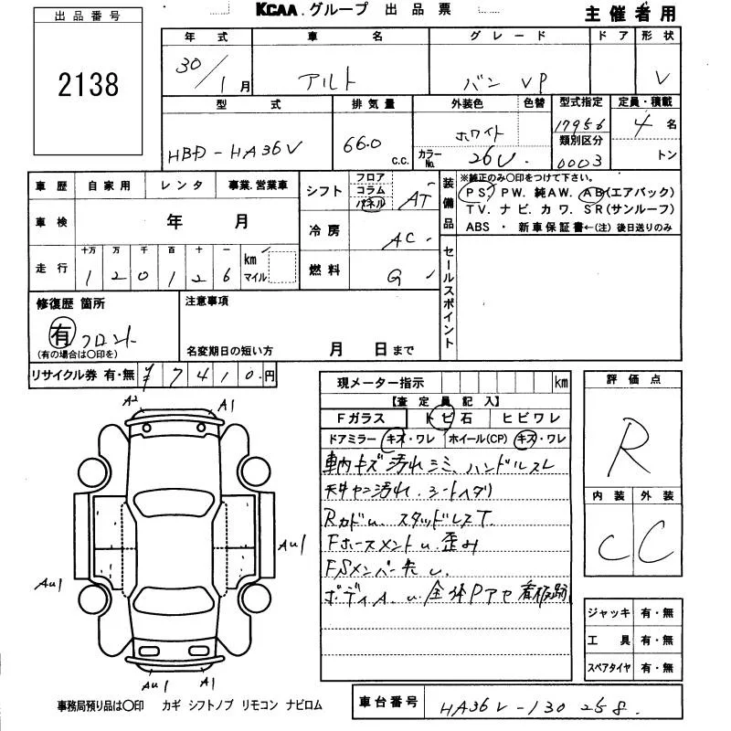 Suzuki ALTO VAN с аукциона Японии KCAA Fukuoka лот № 2138