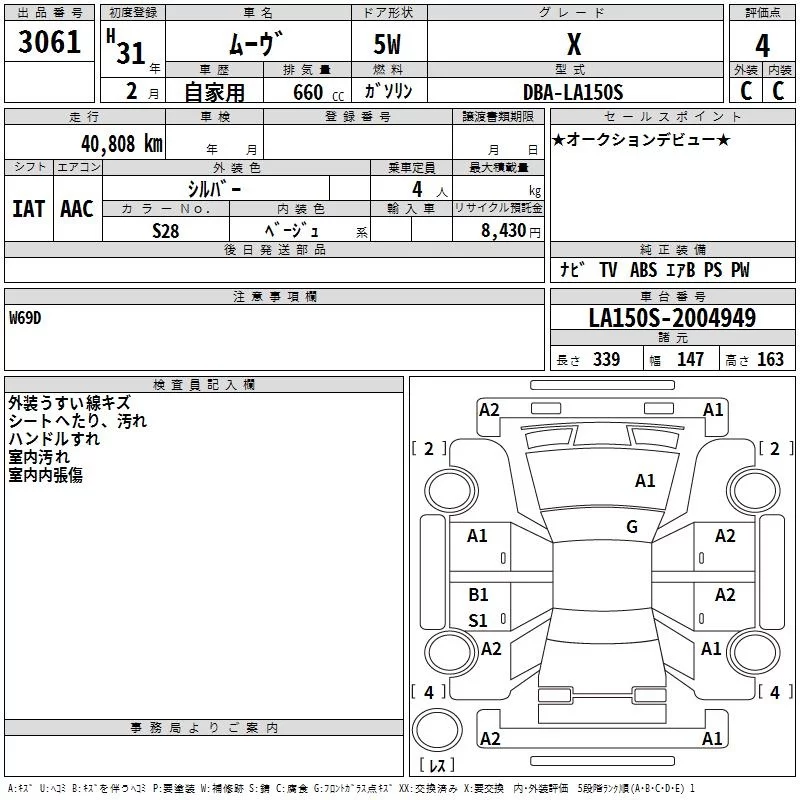 Daihatsu MOVE с аукциона Японии TAA Chubu лот № 3061