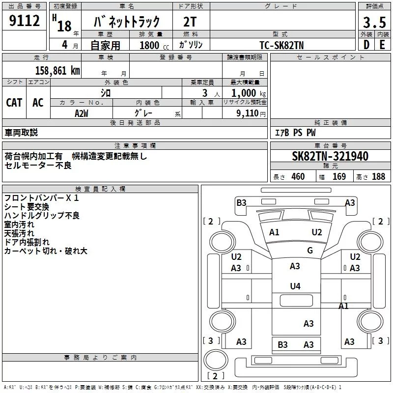 Nissan VANETTE TRUCK с аукциона Японии TAA Kanto лот № 9112