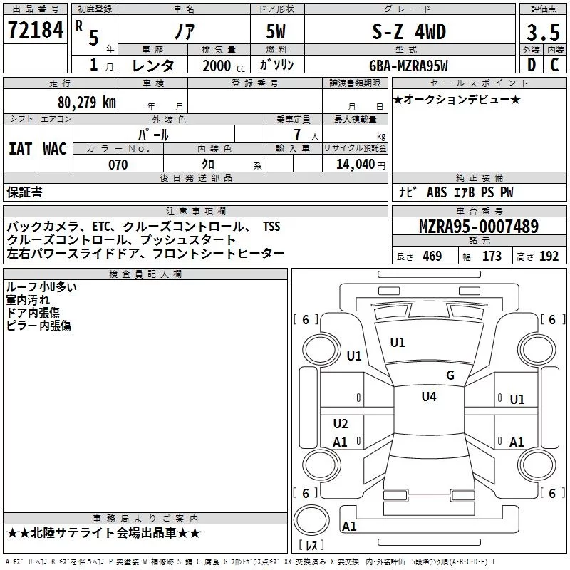 Toyota NOAH с аукциона Японии TAA Chubu лот № 72184
