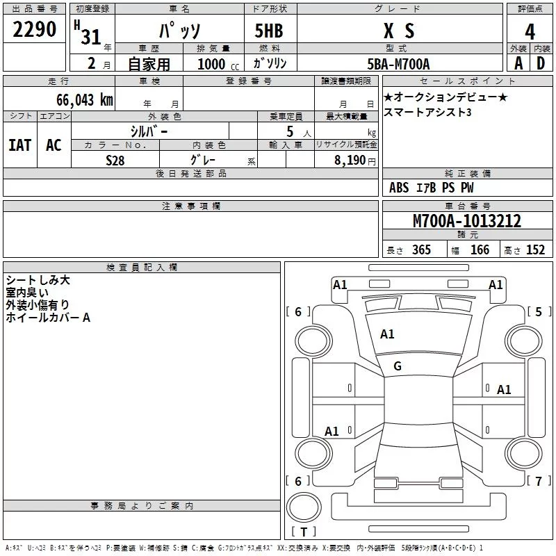 Toyota PASSO с аукциона Японии TAA Chubu лот № 2290