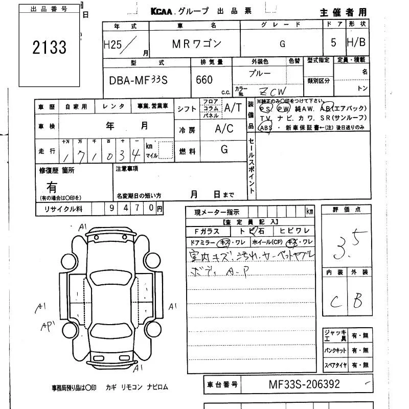 Suzuki MRWAGON с аукциона Японии KCAA Fukuoka лот № 2133