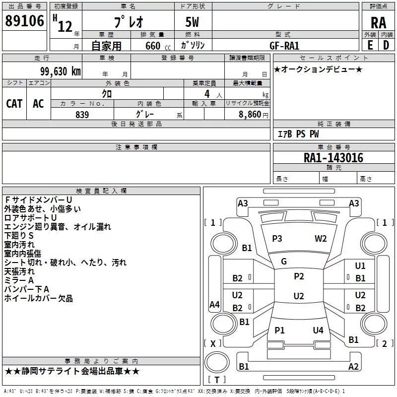 Subaru PLEO с аукциона Японии TAA Chubu лот № 89106