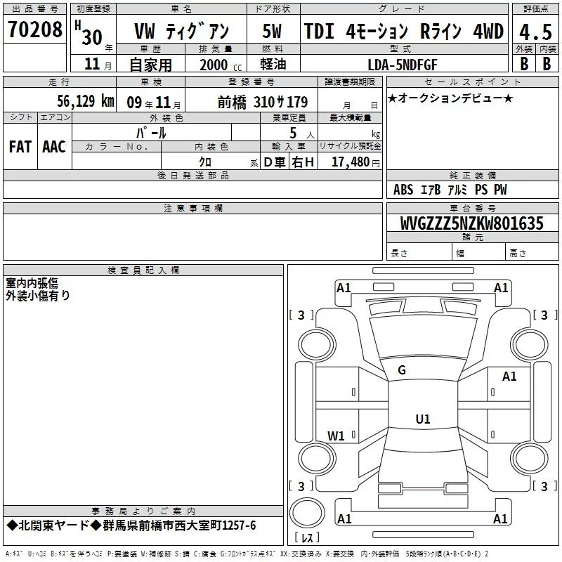 Volkswagen TIGUAN с аукциона Японии TAA Kanto лот № 70208