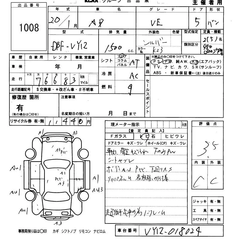 Nissan AD с аукциона Японии KCAA Fukuoka лот № 1008