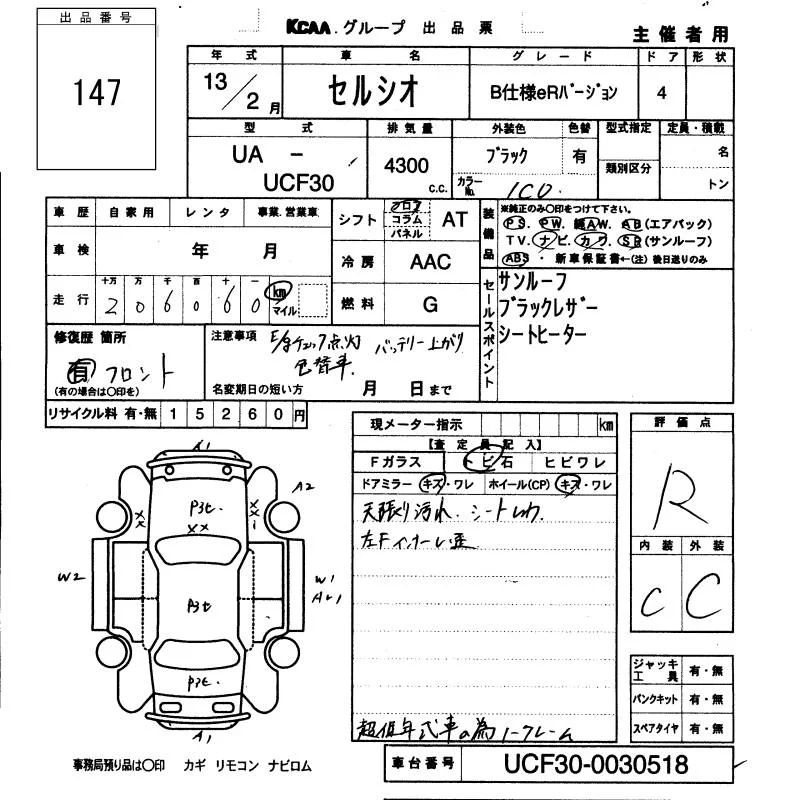 Toyota CELSIOR с аукциона Японии KCAA Fukuoka лот № 147
