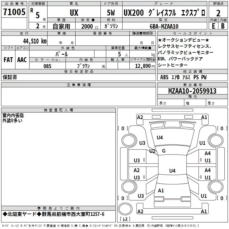Lexus UX с аукциона Японии TAA Kanto лот № 71005