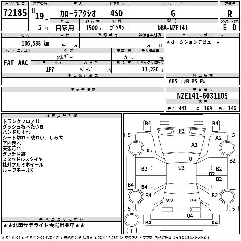 Toyota COROLLA AXIO с аукциона Японии TAA Chubu лот № 72185