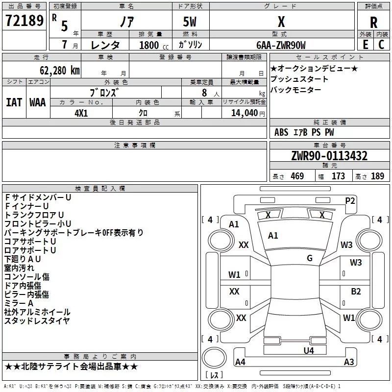 Toyota NOAH с аукциона Японии TAA Chubu лот № 72189